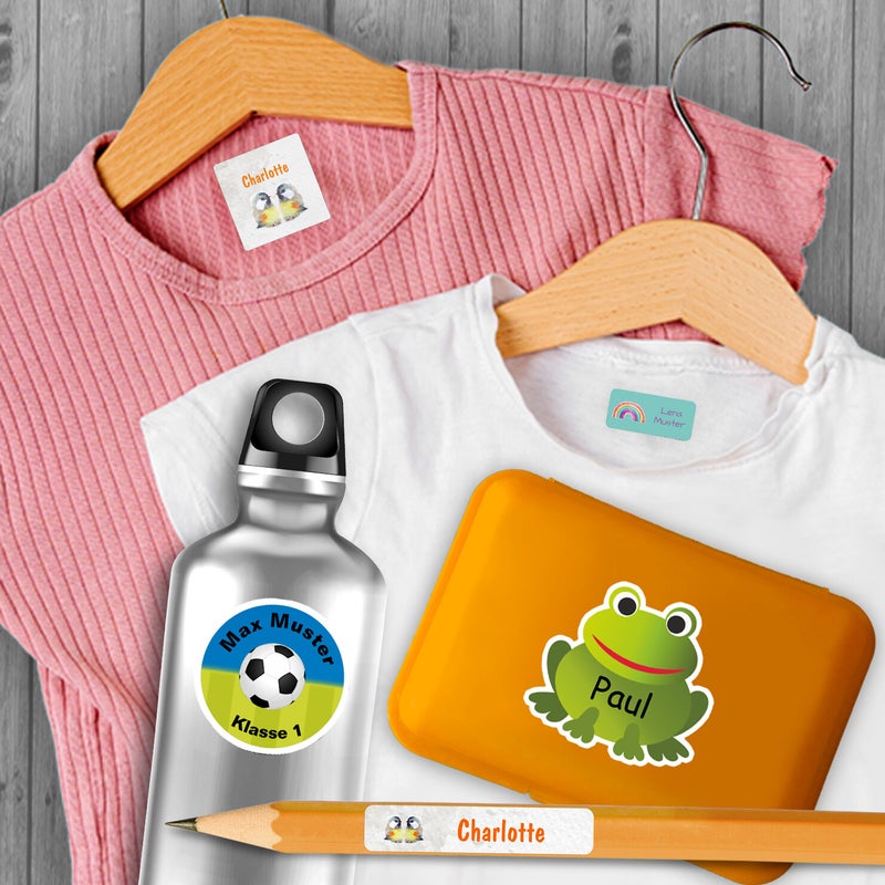 Liebevoll gestaltete Etiketten für Gegenstände, Textilien, Stifte und vieles mehr – ideal für Kita und Schule.